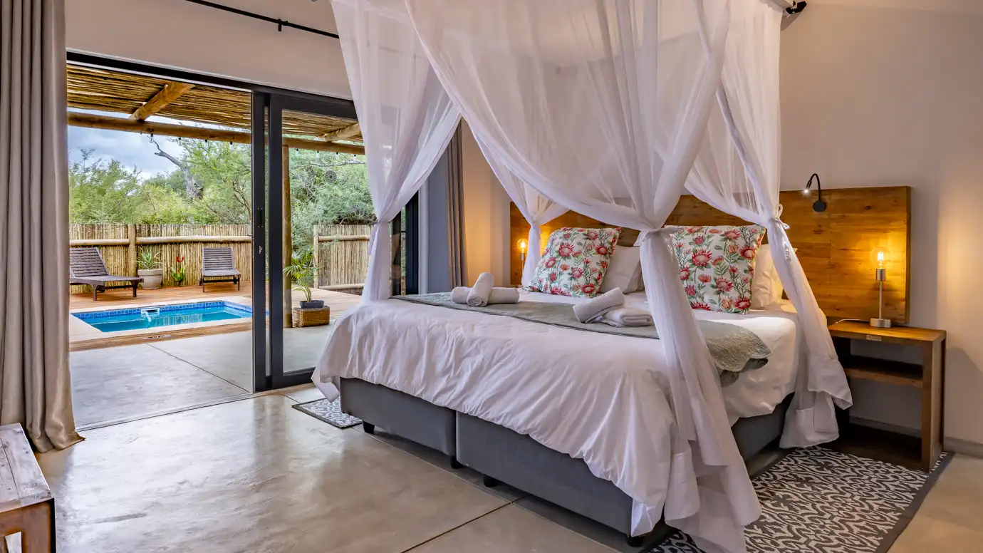 Sliding doors in each room open directly onto the patio, private plunge pool & deck, where you'll find sun loungers and umbrella for relaxation.